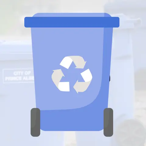 The bins are old refurbished garbage and recycling bins that are no longer in use. Bins can be purchased and picked up at the Prince Albert Landfill.