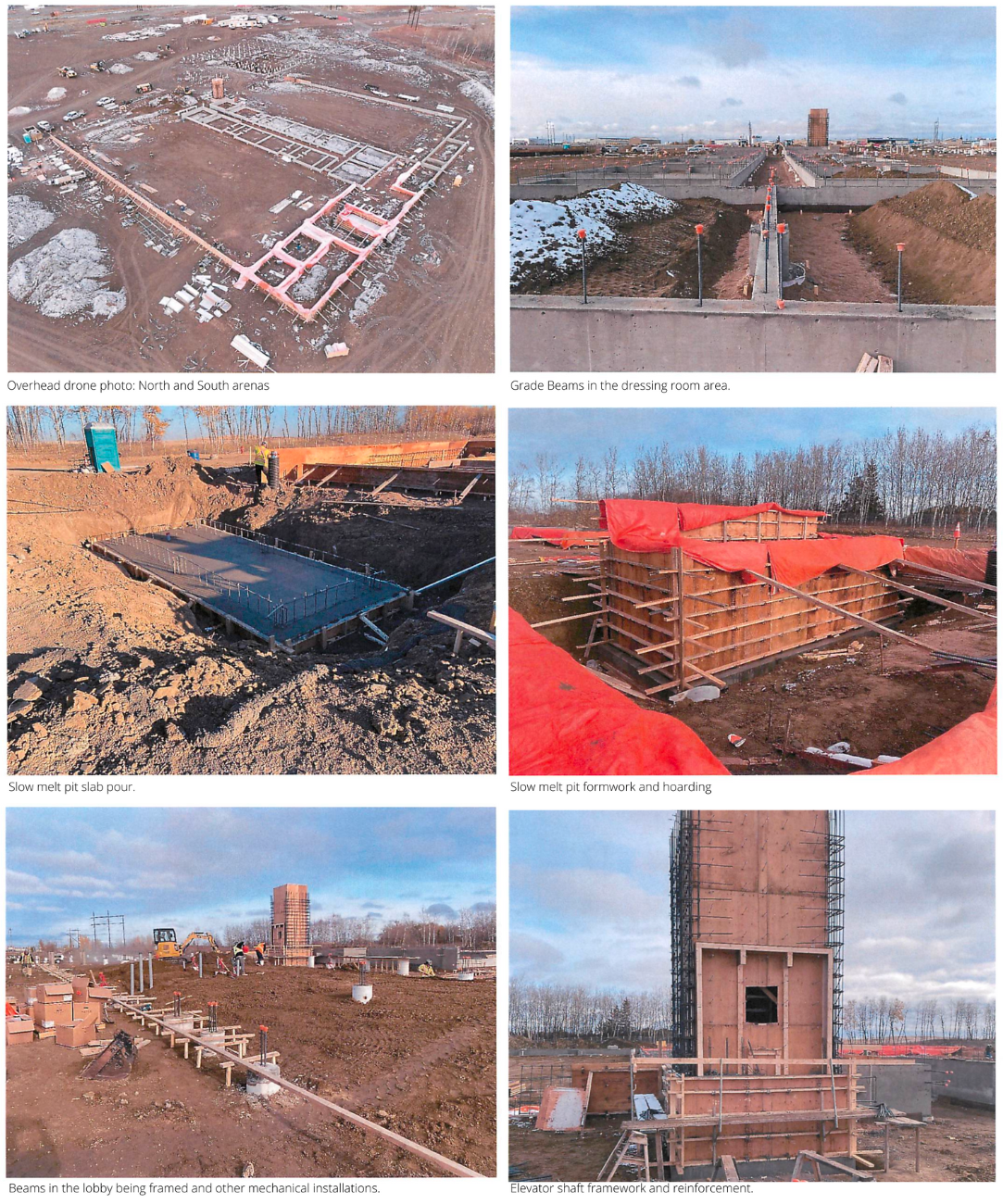 - Mechanical and electrical rough-ins continued. Ductwork and plumbing continued in change rooms and south arena.
